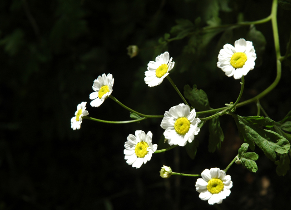 Feverfew is a plant native to Asia Minor and the Balkans. Feverfew dried leaves, fresh leaves, and extracts are used in medicine. Feverfew leaves contain many different chemicals, including one called parthenolide. Parthenolide, as well as other chemicals in feverfew, might help decrease migraine headaches. People most commonly use feverfew for migraine headaches. People also use feverfew for itching and tension headache.